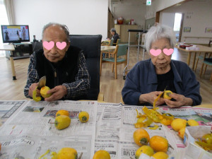 2025.11.10なごみ 干し柿作り Tweet Share こんにちわ。国府市場事業所なごみの岡室です。 利用者様と一緒に干し柿を作りました~♪ 流石、慣れたものですね! あっという間に完成しました。 さて、いつ頃出来るかお楽しみに~☆ Tweet Share 投稿者: kokufuuser なごみ コメント: 0 秋祭り☆ 優良防火対象物地域防火推進団体表彰 関連記事一覧 おやつにケーキ☆ ☆なごみ1周年☆ 七夕で願い事・・・ 秋祭り☆ きゅうり収穫 廣栄堂工場見学♪ コメント ( 0 ) トラックバック ( 0 ) この記事へのコメントはありません。 この記事へのトラックバックはありません。 トラックバック URL 返信をキャンセルする。 名前 ( 必須 ) E-MAIL ( 必須 ) ※ 公開されません URL