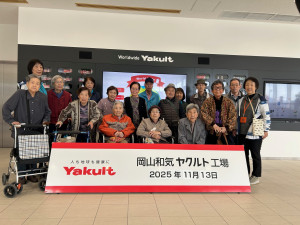 2025.11.17NEWS 紅葉を楽しみ社会見学 さいわい Tweet Share ケアハウスさいわいの 外出行事のご紹介です 11月13日に紅葉狩りを兼ねて和気町の「ヤクルト工場」に行ってきました‼ まずは、腹ごしらえ (=^・^=)型ロボットがお出迎え うなぎ カレー かつ丼 てんぷらうどん お好きなものをご自分の注文 由加神社に立ち寄り、車中から紅葉を愛でました ヤクルト工場に到着! 見学コース内は撮影できませんでしたが、その前後のご様子を紹介 大きな工場内の見学だったので、みなさん少しお疲れのご様子でしたが 楽しく学ぶ機会になりました。 長畑 Tweet Share 投稿者: koukikaiuser1 NEWS, さいわい コメント: 0 秋祭り 関連記事一覧 ひだまり BBQ🍖 暑い夏を吹っ飛ばせ(^o^)/ ケアハウスさいわい 囲碁ボール 新装開店 『和い輪い亭』 七夕祭り ~さいわい~ さいわい ハロウィンパーティー開催👻 さいわい とんど🔥 コメント ( 0 ) トラックバック ( 0 ) この記事へのコメントはありません。 この記事へのトラックバックはありません。 トラックバック URL 返信をキャンセルする。 名前 ( 必須 ) E-MAIL ( 必須 ) ※ 公開されません URL