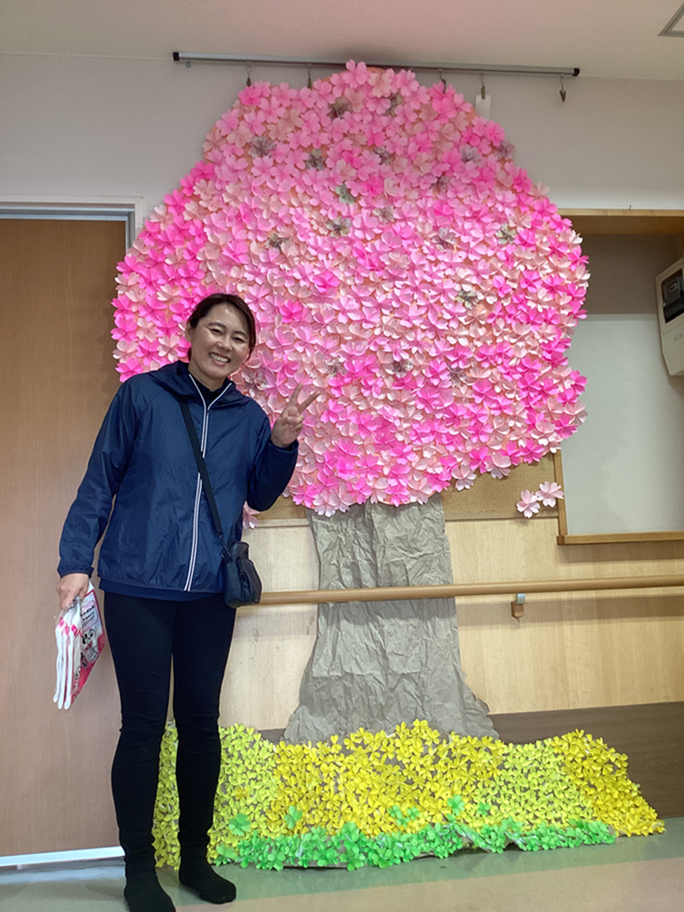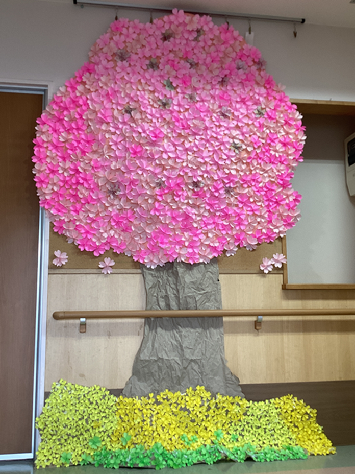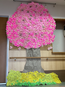 さいわいで 入居者と職員 一緒に作った桜が満開です