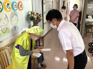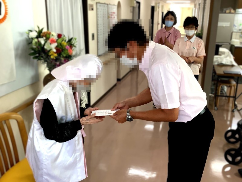施設長からもお祝いの言葉と、ちょっとした景品が渡されます。