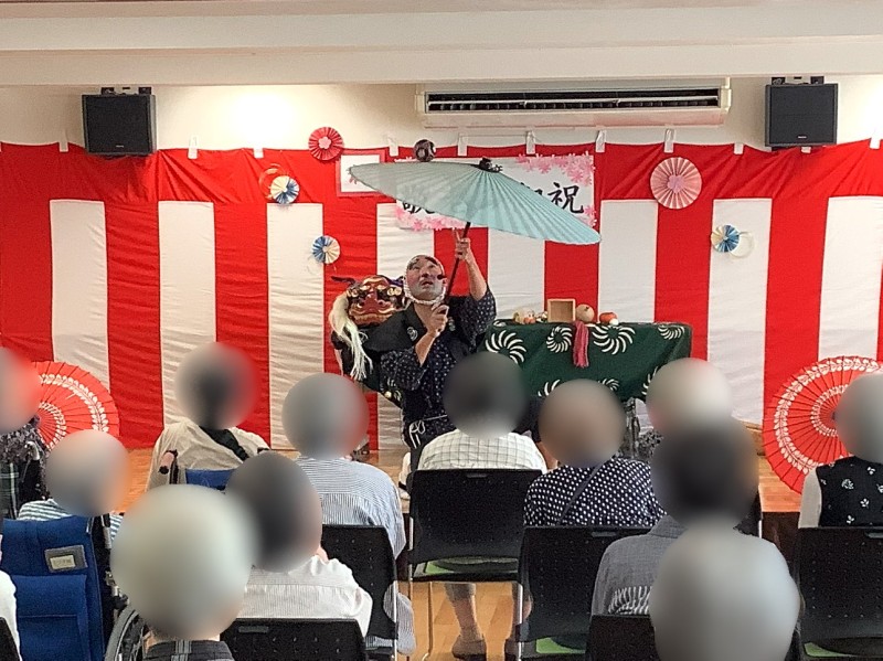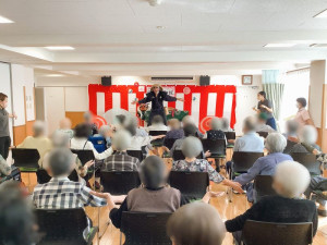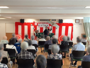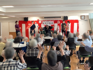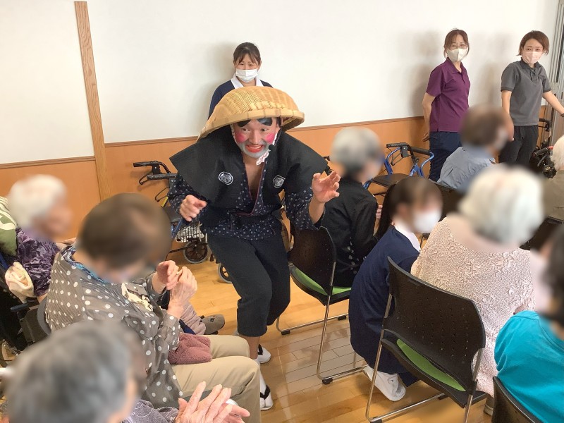 9月22日、デイサービスの敬老会、伝統芸能鑑賞会に「戦国どじょうすくい中本」さんが来て下さいました!
