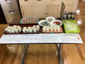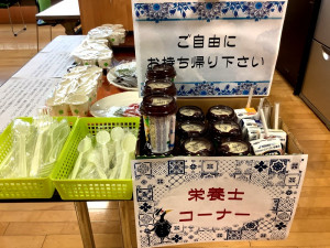 栄養士コーナーでは、キザミやミキサー、ソフト食の試食ブースを作り、ご利用者様が普段どのような物を食べているのか実際に食べて体験していただきました。全員ではありませんが、興味をもっていただけたようなので良かったです