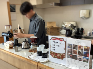 今回、喫茶では職員が豆からコーヒーを淹れてくださいました。総社にある「珈琲豆 木蓮」で購入したそうです。