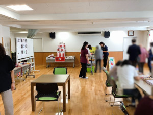 さつきホールではゲームや喫茶、栄養士の試食コーナー等があります。