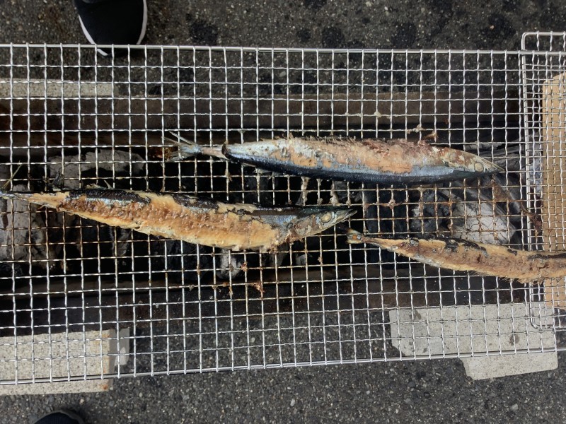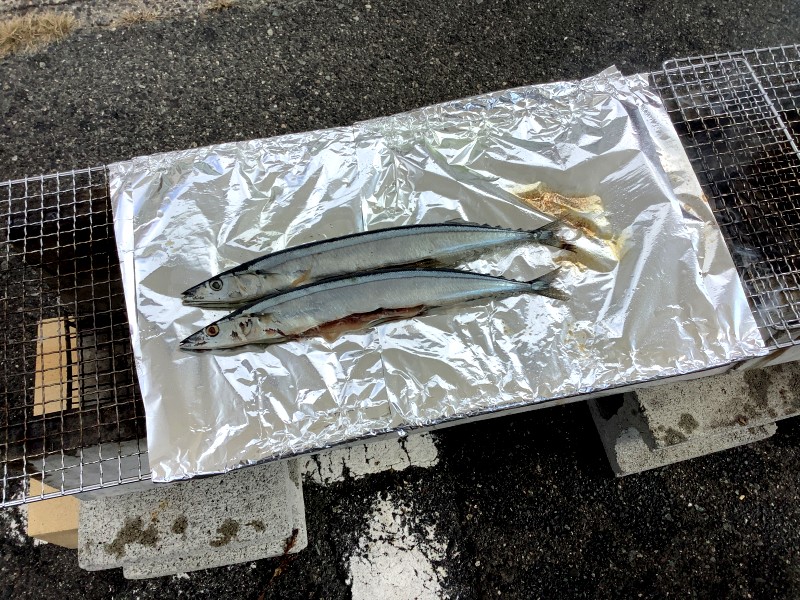 お店で骨ありの秋刀魚を購入し、炭焼きした物を食べていただきます。