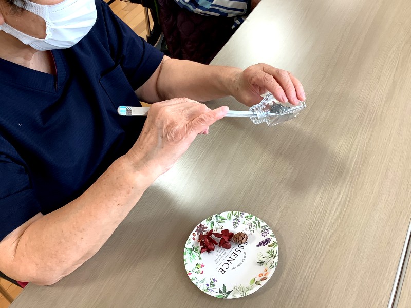 14日、かたらいでは講師の先生をお呼びし、ハーバリウム教室が開かれました。